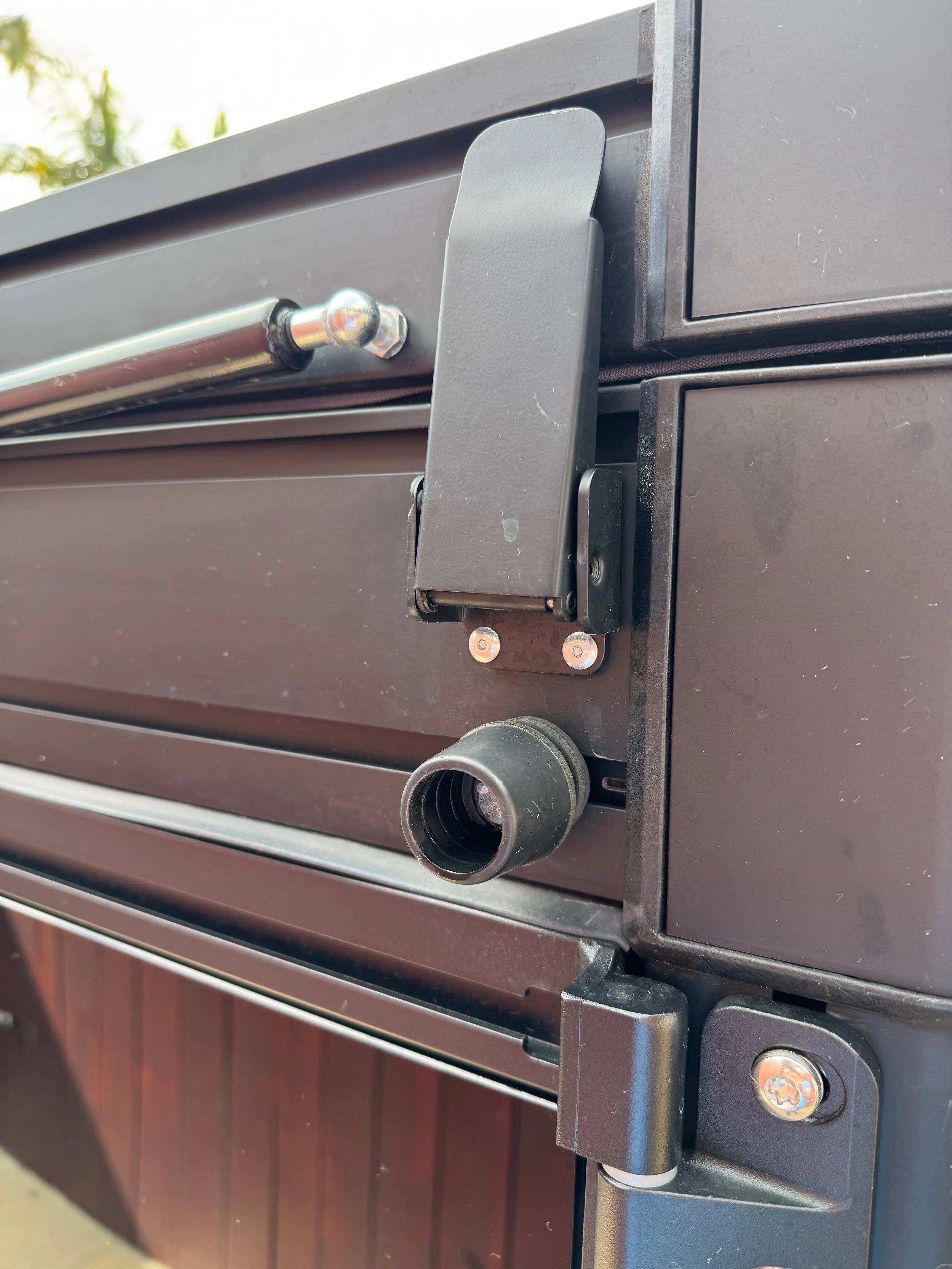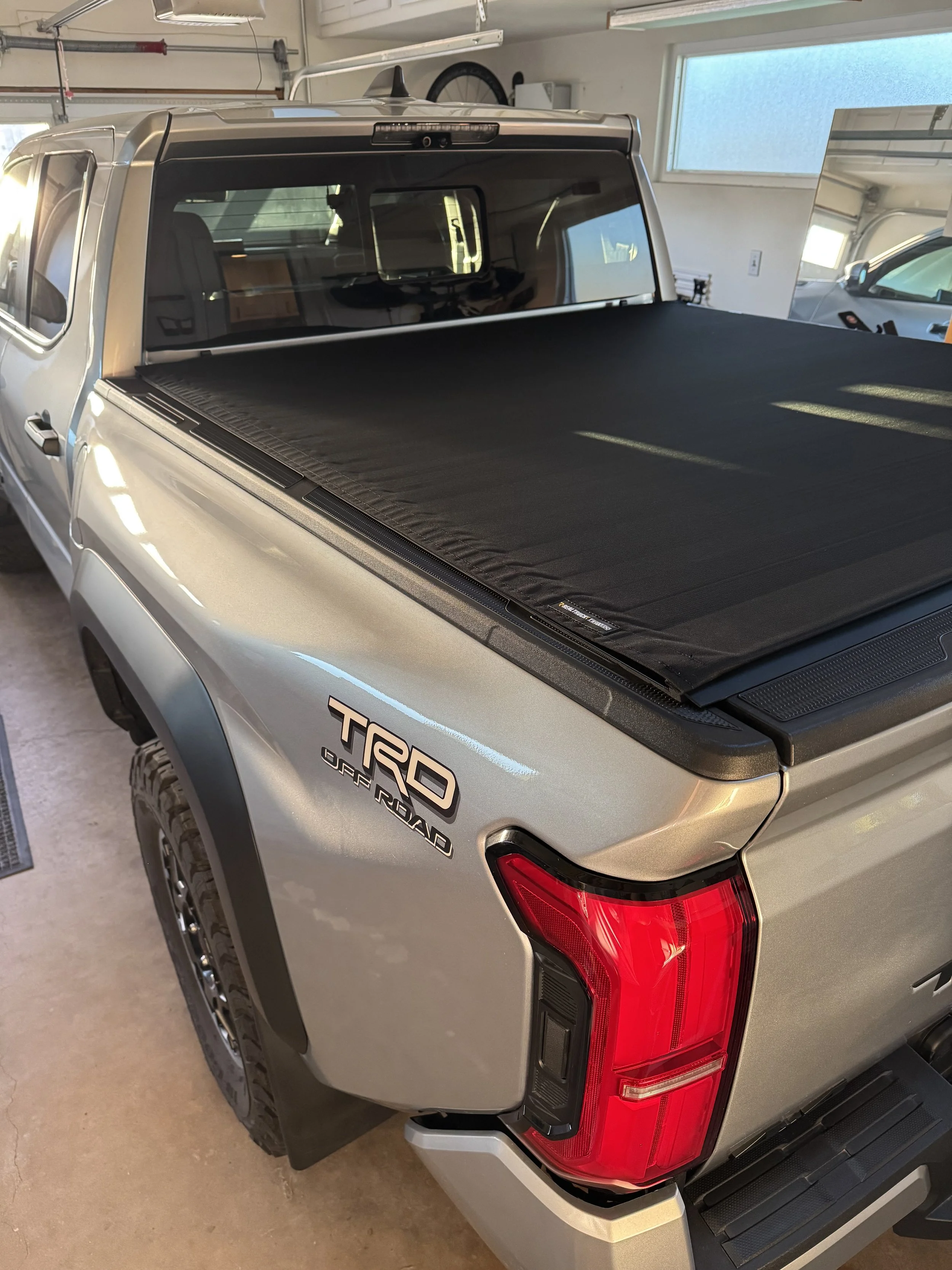 It’s worth mentioning that my 2025 Tacoma has a digital rear view mirror. The camera is near the high mounted stop light on the back of the cab, and that camera can see through the camper (thanks to the glass on front and back), and give me a fantastic view while driving. It compensates for the heavily tinted rear window of the camper. With the standard rear view mirror, it looks as dark as night, but the camera adjust the exposure.