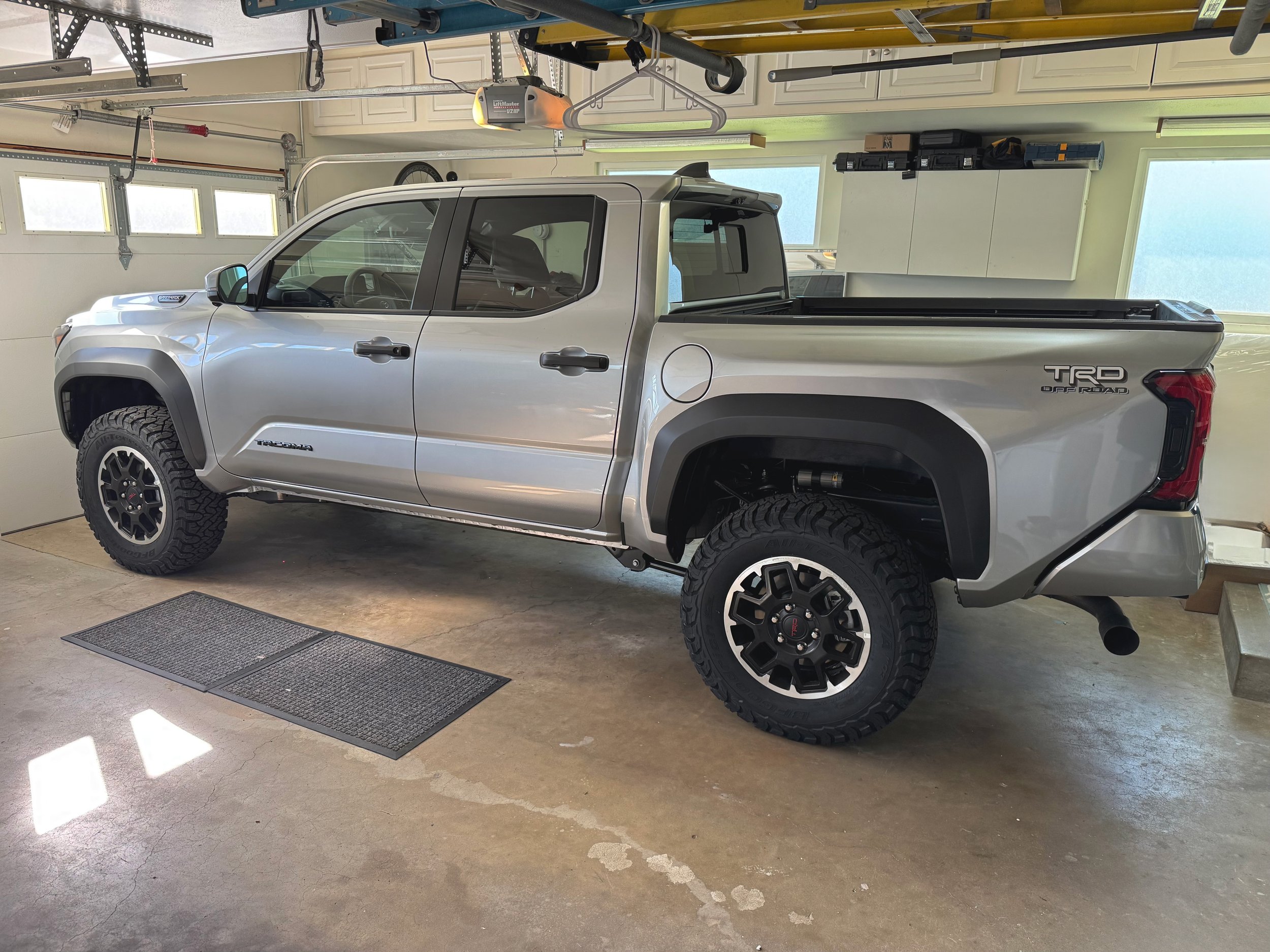 For tires, I went with E rated BFGoodrich AT KO3 at 275/70/R18, which is just one size larger than stock and just over 33”. Sure, you can fit 35” tires on a lifted tacoma, but that cuts into fuel economy, and perhaps more importantly, a spare tire of that size won’t fit under the truck. I haven’t updated my spare yet, but based on my reading, a 275/70/R18 spare will still fit under the truck.